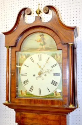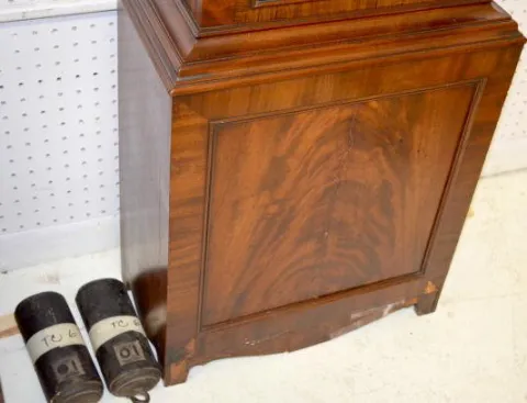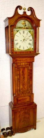 English T&S 8 Day Tall Case Clock Seconds bit and calendar dial; mahogany veneer. 7ÕT (Some damage.)