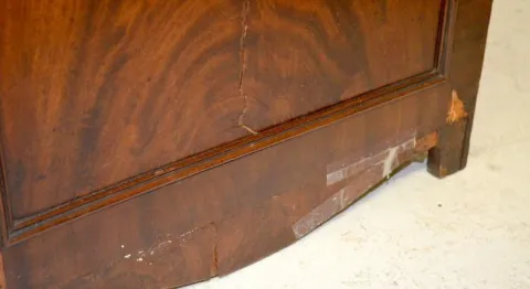 Seconds bit and calendar dial; mahogany veneer. 7ÕT (Some damage.)