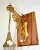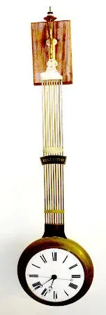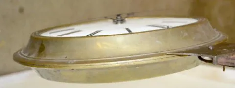 With a porcelain dial; one side of the dial has seconds hand; there is a wall brace to hang the clock on. 42Ó Long Not tested..