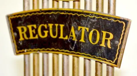 Double Sided Pinwheel Regulator Clock With a porcelain dial; one side of the dial has seconds hand; there is a wall brace to hang the clock on. 42Ó Long Not tested..