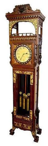 Unusual 106Ó German Rosewood Tall Case Clock Carved open gallery; heavy carved gold trim; 3 weight; carved griffins; extra fancy.