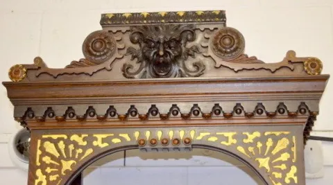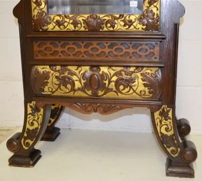 Carved open gallery; heavy carved gold trim; 3 weight; carved griffins; extra fancy.