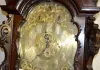 Fancy 8ÕT JJ Elliot Tall Case Clock Pictured in book; mahogany case; heavily carved; Marqueterie Inlay fret work over glass; 3 weight tube chime; Westminster- Whittington chimes; heavy ornate brass dial. 8ÕT (The strike rod needs to be adjusted.)