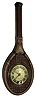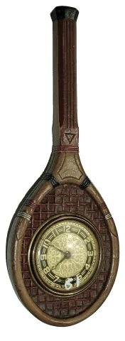Lux Clock Mfg. Co., Waterbury, Conn., tennis racquet, 30 hours, time only, novelty clock, c1925 the good original condition overall has just the problem of white-out numbers on the plastic crystal, and the movement winds and sets but does not tick. Ht 7 1/2Ó