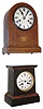 (1) The are some chips to the marble case. The finish has oxidized. The porcelain dial and hands are original and in excellent condition. Ht 8 3/4Ó. (2) The wood case retains some original finish and has nice inlay on the case front. The hands and dial are original and in good condition. There is one age crack in the veneer on the top of the case. 3 of the 4 small round feet are missing. Ht 12Ò.