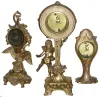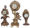 all three are in very good original condition with most gilding still in place, and no losses or damage. One celluloid dial is curling, the other is yellowing; the Jennings Bros. porcelain dial is good. All the small movements are fully wound and not ticking, so service will be needed to have them running. Hts. 13Ò, 10 1/2Ó and 7 3/4Ò