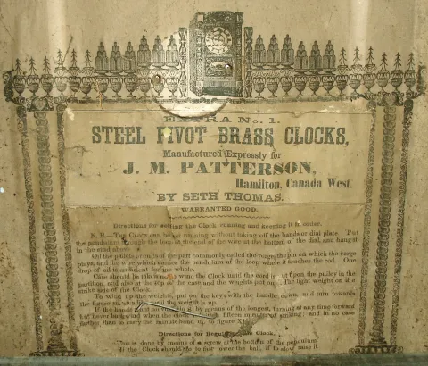 Clocks- 6 (Six): (1) Seth Thomas for J. M. Patterson, Hamilton, Canada, West OG column shelf clock, c155; (2) Russell Judson, Bristol, Conn. 30-hour Iron back plate movement shelf clock, c145; (3) Atkins & Porter, Bristol, Conn., 30-hour, time and strike,
