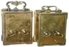 Clocks- 2 (Two) Lenkirch German small brass 30-hour carriage-style alarm clocks, c1890 these both are good original condition overall, although one enameled white dial has some hairlines. Both tick but only one alarm seems to function, and are sold as is. Hts to handle tops 5Ó