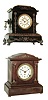 Clocks- 2 (Two): (1) Ansonia Clock Co., Ansonia, Conn., 8 days, time and strike, spring brass movement iron case black mantel clock, c185. This example is the same as the ÒSt. ClairÓ model with different side ornaments. (2) Seth Thomas Clock Co.,