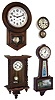 (1) The finish is rough, The porcelain dial and R-A pendulum bob are in good condition. Ht 21Ó. (2) The clock case has been painted white. The bezel may be from a similar clock. Ht 10 1/2Ò. (3) The clock appears to be in good condition overall. Ht 22Ó. (4) The best of the four clocks ... nice finish, dial, hands, label and pendulum bob, but finial is missing. Ht 27Ò.