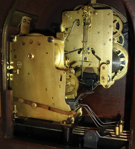 Clocks- 2 (Two): Seth Thomas Clock Co., Thomaston, Conn., ÒChime Clock No. 59Ó, 8 days, time and strike, with quarter hour strike on rods, spring brass movement Tambour style mantel clock. (2) Seth Thomas Clock Co., Thomaston, Conn., ÒChime Clock No. 57Ó,