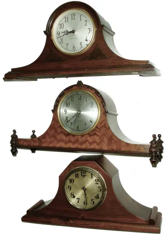 this large assortment is mostly in very good condition. Tambour makers include Herschede and Seth Thomas (electric), and Gilbert and Waterbury, 8 days, time and strike.