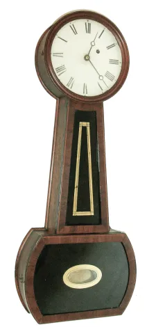 American, unsigned, weight driven, banjo timepiece, mahogany case with slender proportions, c1840