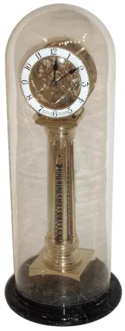 the bright brass shows a bit of tarnish, but the heavy marble base and tall glass dome are fine. The movement ticks but was not tested long term. Heavy and fragile for shipping. Ht to top of dome 24Ò