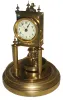 Clocks- 2 (Two) European shelf clocks: (1) French brass and beveled glass, 8 days, time and strike, crystal regulator mantel clock, Japy Freres Medaille dÕHonneur movement, c1900Õ (2) Gustav Becker, Freiburg, German, Medaille DÕOr disk pendulum 400 day clock with glass dome, c1900 (1) this smaller model has an older worn tarnished surface, the beveled glasses are fine, the white enamel dial has a few tiny chips around the winding holes. Sadly, we see rust on some of the steel components, it is not ticking or striking, and the pendulum is absent. Ht 8 1/4Ó (2) the brass retains an original old patina with expected wear and tarnish. The enamel dial is fine, as is the ornate disk pendulum. The torsion spring is good and the movement ticks but was not tested long term. Ht 11 1/2Ò to top of dome