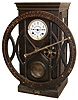 this clock was one of the first time punch clocks invented, by the Scotsman Alexander Dey. Dey Time Register Co. eventually merged with International Time Recorder, also of Endicott, the forerunner of IBM. The case and parts retain its untouched original finish with some loss to paint on time punch wheel. The in and out wheel is missing its paper tabs. There has been an electric light installed inside the case. The original etched glass window with ÓDey RegisterÕ is present and intact and the glass and bezel over the dial are absent. This item is large and heavy and will require custom shipping / handling. Ht 35 1/2Ò