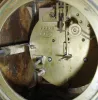 (1) the heavy French clock (note top is NOT attached) has an old patina, darkened silvered dial, and good beveled convex glass. Its movement, signed ÓM.S.Ò strikes on a bell, ticks and strikes, Ht 13 1/2Ó; (2) The Seth Thomas case has a nice smooth original finish, signed silvered dial with a bit of brass showing through, and applied brass numerals. Its balance wheel No. 125 round movement strikes on a gong, Ht 8Ò (3) This is a cute and nicely made reproduction, although the plywood back would appear better if painted black or stained dark. The door glass needs to be secured in place. The movement, with old fancy pendulum, ticks but was not tested long term. Dial is signed paper; hands could be improved. Ht 19 1/2Ó; (4) like new