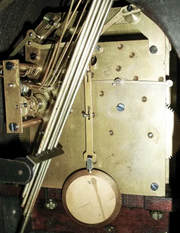 Clocks- 2 (Two), one incomplete: Seth Thomas Clock Co., Thomaston, Conn., ÓChime Clock No. 71Ò mahogany round top, 8 days, time and Westminster chime mantel clock, 113A movement, c1921, PLUS Swiss ÓRue de la PaixÒ streetlamp stand, no Jaeger LeCoultre