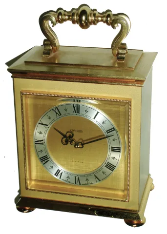 Concord Swiss, 8 days, striking lacquered brass oversize carriage clock, mid 20th century