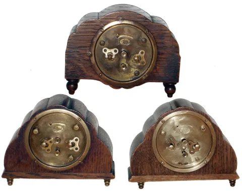 Clocks- 3 (Three) Lenzkirch German tambour-style oak case, 30 hours, alarm clocks, porcelain dials, c1900 all three are in very good original condition, with porcelain dials (two have radium numbers). Three tick, one alarm functions, but sold as is. Hts 4 1/4Ó
