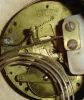 this heavy case is in remarkably good condition with just a few tiny edge chips. The cream porcelain, with raised white numbers, is pristine. as is the thick beveled glass. The movement strikes, and ticks and stops, and will need service. Fragile and heavy for shipping. Ht 12 3/4Ó