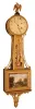 Clocks- 2 (Two): (1) Waterbury Clock Co., Waterbury, Conn., ÒHalifaxÓ, 8 days, time and strike, spring brass movement wall clock, c1893; (2) Waltham Watch Co., Waltham, Mass., 8 days, spring brass lever movement Patent Timepiece or ÒbanjoÓ clock, c1930 (1) refinished oak case with restoration to the top and bottom bracket. Original paper dial has age darkened with stained areas. Original hands and pendulum. Ht 32 1/2Ò (2) Mahogany case in original finish. The bracket base with some loss. Side arms, both doors and the brass bezel now gold painted. The bracket has been broken in the past and repaired. The two tablets have a fair amount loss and flaking paint. The original painted dial has badly lifting paint and has loss. Original hands and finial. Ht 41Ó