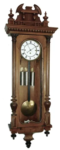 German walnut 3 weight, 8 days, time and quarter striking Vienna regulator, c1890