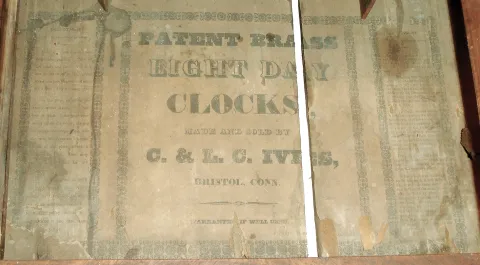 Clocks- 4 (Four): (1) Unknown (probabably an early Birge firm) 8 days, time and strike, rivited strap, rolling pinion weight-driven brass movement triple decker shelf clock with carved columns and paw feet, c1830. (2) C. & L.C. Ives, Bristol, Conn., 8 days, time and strike, rivited strap, rolling pinion, weight-driven brass movement triple decker shelf clock, c135.(3) Unknown, four column OG style New York style empty clock case, c145. (4) Birge & Fuller, Bristol, Conn., 8 days, time and strike, later strap brass, rolling pinion, weight-driven brass movement column & cornice shelf clock, c148. (1) Unknown (probably a Birge firm), Carved half column triple decker case with a movement. No carved splat or center columns. There is no pendulum, weights or dial. (2) C. & L.C. Ives. Mahogany veneered case with minor veneer loss. Bottom tablet is not original. Some newly turned feet inside the case. Entire top is missing as is the verge on the movement. There are no hands, pendulum, dial or weights. (3) Unknown. Nice clock case suitable for parts. (4) Birge & Fuller. Mahogany veneered case in original finish with some veneer damage on bottom OG molding and the top right side OG molding. Bottom glass is missing. Minute hand is missing. There are no weights, pendulum or dial.