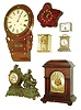 Clocks- 7 (Seven): Junghans three train bracket clock, an Anglo-American short drop wall clock, an Ansonia ÓReubensÒ figural clock with exposed escapement and time and strike, Germany Liberty alarm clock and three quartz clocks