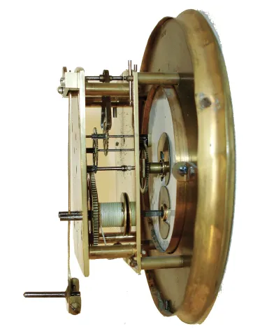 the case retains some of its original finish. The dial has a hairline through the center. Dial, movement and bracket has matching serial No. Õs. The lower finial is absent. Ht 32Ó