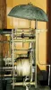 the case has been refinished and the bracket base is a replacement. The broken arch top has restorations. The finial is a replacement. The dial has some bleeding on upper section of chapter ring but is otherwise very attractive with a scene of Lochleven / Kenross castles and waterfalls. Ht 90Ò