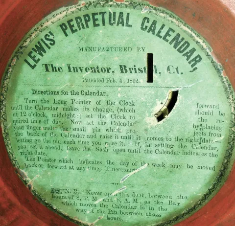 (1) Most of the case finish is gone. The top case molding is missing. The upper paper dial has darkened considerably. The columns on the upper portion of the case are loose. The B.B. Lewis calendar mechanism, dial and all hands are correct. The linkage from the time movement to the calendar mechanism needs to be restored. Ht 21 1/2Ó. (2) The case finish is worn fairly thin. The top case molding is missing. The upper paper dial has darkened considerably. The B.B. Lewis calendar mechanism, dial and all hands are correct. The linkage from the time movement to the calendar mechanism needs to be restored. Ht 21 1/2Ò.