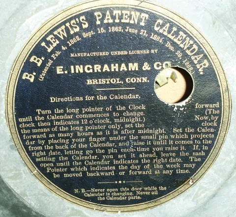 Clocks- 2 (Two): (1) E. Ingraham & Co., Bristol, Conn., ÓIngraham CalendarÒ shelf clock with spring driven, 8 days, time & strike movement in a walnut case, c1881. (2) E. Ingraham & Co., Bristol, Conn., ÓIngraham CalendarÒ shelf clock with spring driven,