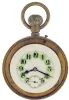 glass with minor scratches, bezel and brass parts of case with tarnish, dial with hairlines, hands good, movement with losses to plating, running