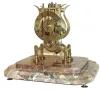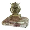 movement good, running, escapement needs minor adjustment, dial lacking silver, hands may be old replacements, hour wheel replaced, marble base with a few tiny flakes, shade good, Ht 11Ò