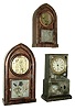 Clocks- 3 (Three): (1) E. C,. Brewster, Bristol, Conn. 8 days, time and strike, brass rack strike movement with detached fusees round gothic or beehive shelf clock, c1835. (2) Forestville Manufacturing Co. (J.C. Brown), Forestville, Conn., 30 hours, time
