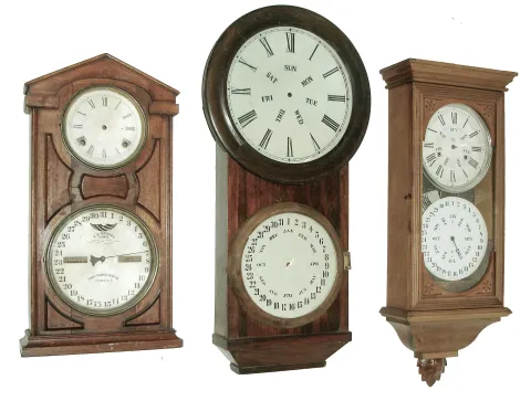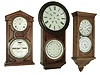 Clocks- 3 (Three): New Haven Clock Co., ÒJerome & Co.Ó, New Haven, Conn., ÒRegisterÓ, 8 days, time and strike, double dial wall clock, c1880 (2) L.F. & W.W. Carter, 8 days, time and strike, double dial calendar clock case (only), c165. (3) Ithaca Calendar