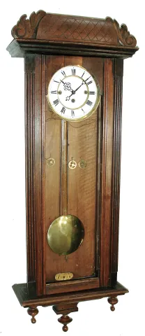 Clocks- 2 (Two) German walnut three weight, 8 days, Vienna regulators: one with Junghans trademark on back plate; one with Hermann Heinze on dial; c1890