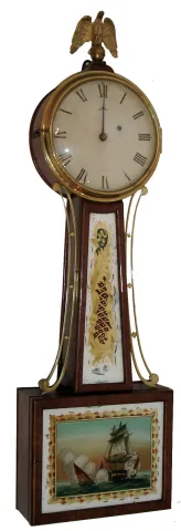 Unsigned, Boston, Mass. area, 8 days, weight brass movement Patent Timepiece or ÒbanjoÓ clock, c1815