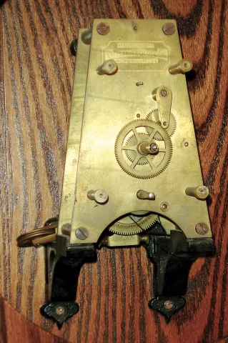 this is a model not pictured in the catalog, but appears to be made a genuine Waterbury factory product. The wooden dial surround is a older replaceme...