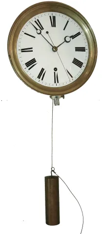 France, a well made pinwheel, center seconds movement with 9 inch porcelain dial, c1960 the dial is in excellent condition. Comes with a brass shrouded weight, a winding crank, and all 3 hands, but no pendulum. Dia bezel = 11 3/4Ò