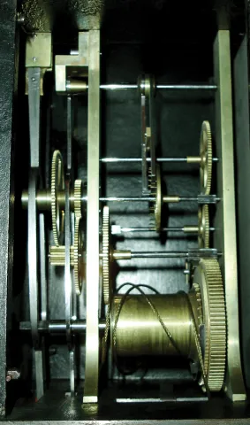 the dial is in excellent condition. Comes with a brass shrouded weight, a winding crank, and all 3 hands, but no pendulum. Dia bezel = 11 3/4Ò