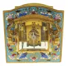 case with wear and losses to gilding, enamel with a few minor losses, one corner of top glass with minor chip, dials and hands good, movement running, alarm functions properly, Ht 6 3/4Ò to top of handle