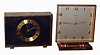Clocks- 2 (Two) Angelus Swiss, 8 days, brass and glass alarm clocks; dark blue dial rectangular; tilted silvered dial, 15 jewel; c1975
