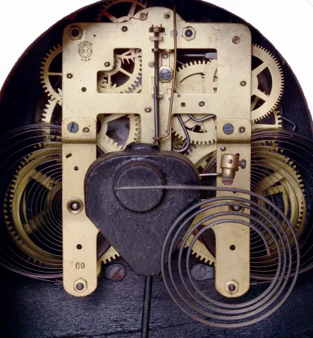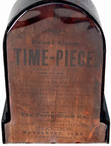 Clocks- 3 (Three) American: (1) Terry Clock Co., Waterbury, Conn. "Patent Alarm Time-Piece" in an iron front case with a spring driven, 30 hours, time and alarm movement, c1870. (2) Seth Thomas Clock Co., Thomaston, Conn. "Sentinel 2" tambour mantle clock