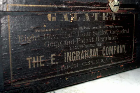 Clocks- 4 (Four) Connecticut wood case, 8 days, time and strike mantel clocks: Ingraham "Signet" and "Galatea"; Sessions round top; and unsigned fancy tambour; early 20th century all four are in very good mostly original condition but are sold as is with no further details available. Ht of largest 14 1/4"