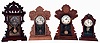 (1) Pressed oak in original finish. Paper dial has been replaced. Nice pair of "ST" hands, but not correct for this model. (2) Walnut case in original finish. Original paper dial is very dark and stained. Minute hand replaced. Original tablet and pendulum. (3) Refinished pressed oak case. Paper dial replaced. Original hands (4) Refinished walnut case. Paper dial replaced. Original tablet, pendulum and hands.