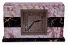 ATO, France, mantel clock, rectilinear Art Deco case constructed of Rosa Norvegia and Portoro marbles, square, Arabic numeral metal dial, steel hands, brass movement marked in part "Leon Hatot Fabricants Paris", c1930 case with a few minor chips and flakes, appears to have been reglued to its base, nickel plated bezel with minor scratches and corrosion, running condition unknown, 9"h x 15"w