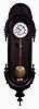 Austria, single weight "Vienna Regulator" Round top case, porcelain dial with embossed bezel, smooth faced pendulum and weight, c1870 this is a slide mount Viennese clock case with original corbels and seat board, and original brass pendulum hanger. The 80 beat movement is from another clock now adapted to this seat board and sets about an inch low in the case. Case retains old and possibly original finish that is now dull, but would benefit from wax or rubbing. Movement is clean and running. Ht 45"