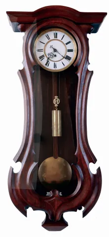 Remember, Ebensee, Austria, hanging regulator, walnut and walnut veneer case with carved serpentine front, Roman numeral white enamel dial, blued steel hands, 8 days weight driven timepiece movement, c1880